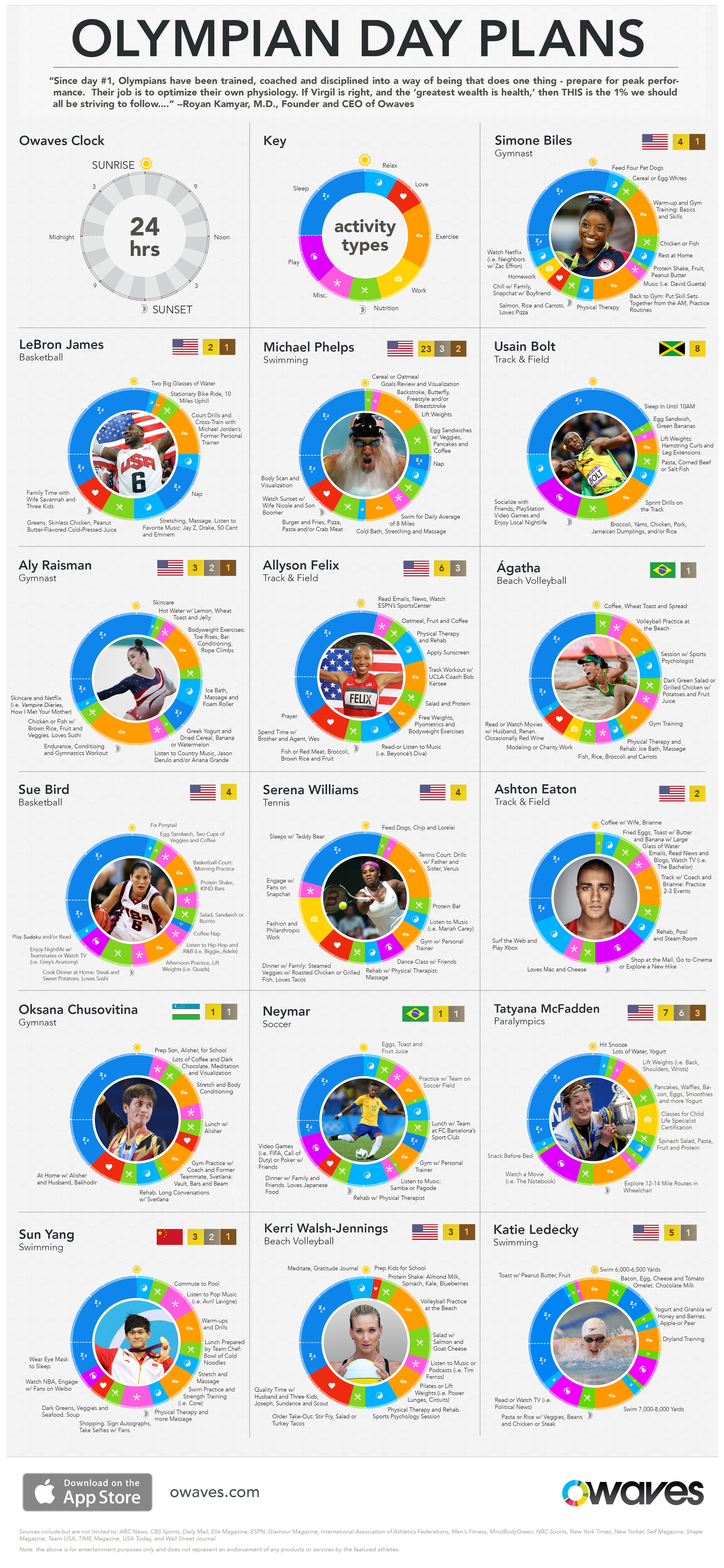 - How 16 Olympians structure their day, a visual representation.